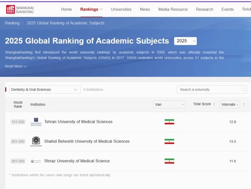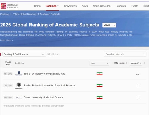 ارتقای اعتبار بین‌المللی دانشکده دندان‌پزشکی شهید بهشتی در نظام رتبه‌بندی شانگهای ۲۰۲۵
