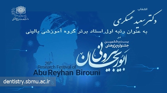 در بیست و ششمین جشنواره پژوهشی ابوریحان بیرونی دکتر سعید عسگری از پژوهشکده علوم دندان پزشکی موفق به کسب رتبه اول استاد برتر گروه آموزشی بالینی گردید.