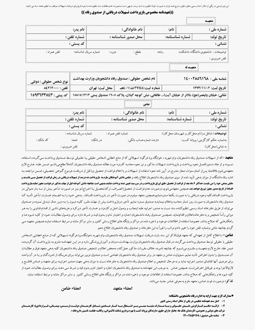 *تعهد محضری (برای کلیه دانشجویانی که برای اولین بار وام دریافت می نمایند)