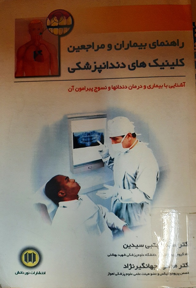 راهنمای بیماران و مراجعین کلینیکهای دندانپزشکی: آشنایی با بیماری و درمان دندانها و نسوج پیرامون آن تالیف مجتبی سیدین، محمود جهانگیرنژاد شابک: 9646734464 انتشارات نوردانش، 1379