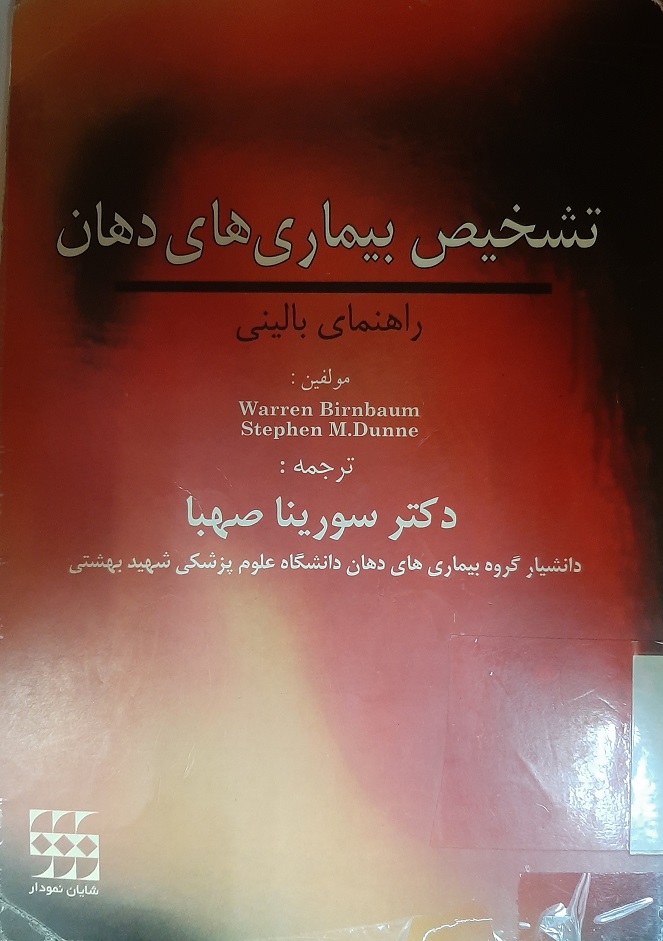 تشخیص بیماریهای دهان: راهنمای بالینی نوشته وارن بیرن باوم؛ ترجمه سورینا صهبا شابک: 9647526644 انتشارات شایان نمودار، 1383 |
