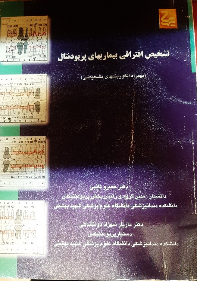 تشخیص افتراقی بیماریهای پریودنتال بهمراه الگوریتم های تشخیصی مولفین خسرو ثائبی، مازیار شهرزاد دولتشاهی شابک: 9644603613 انتشارات حیان، 1379 |