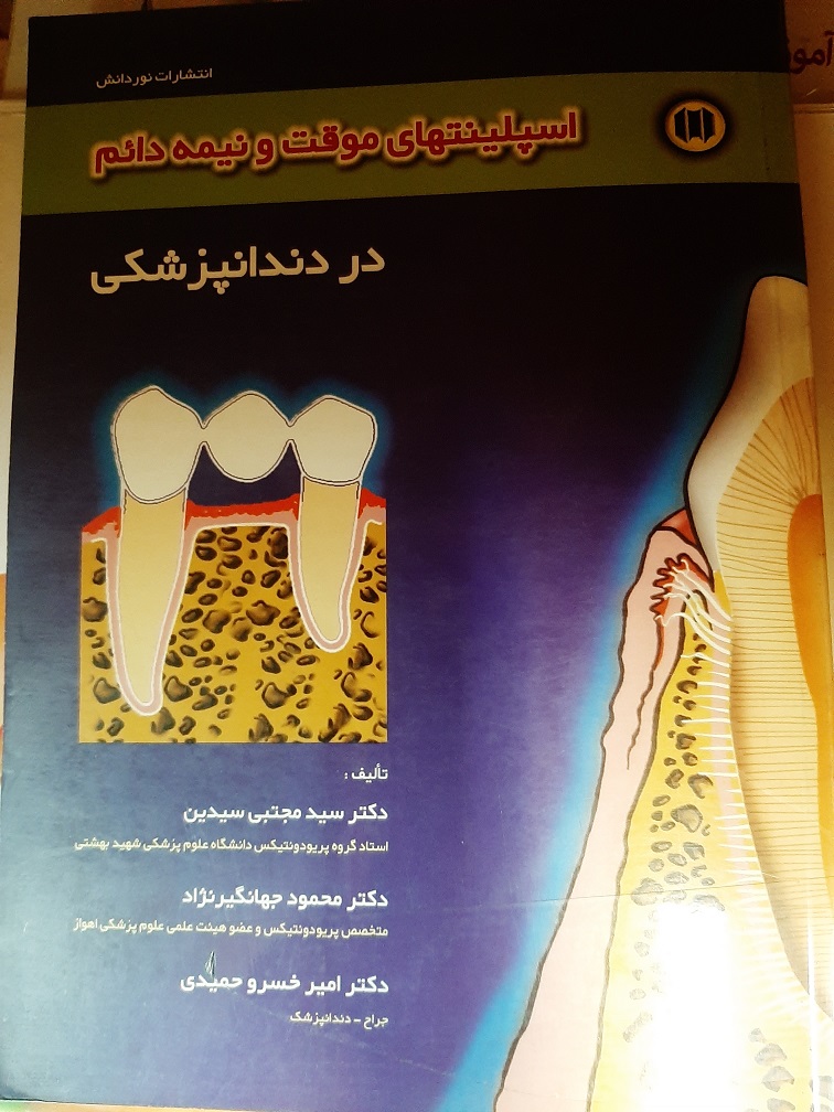 اسپلینتهای موقت و نیمه دائم در دندانپزشکی تالیف و گردآوری مجتبی سیدین، محمود جهانگیرنژاد، امیرخسرو حمیدی شابک: 9646734456 انتشارات نوردانش، 1379 |