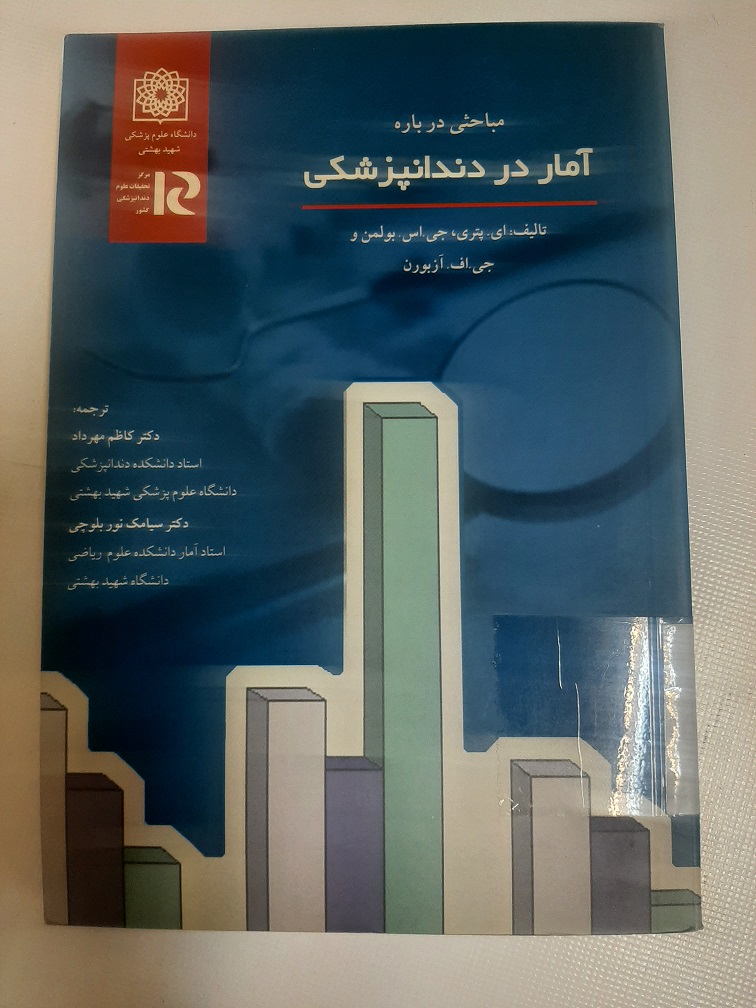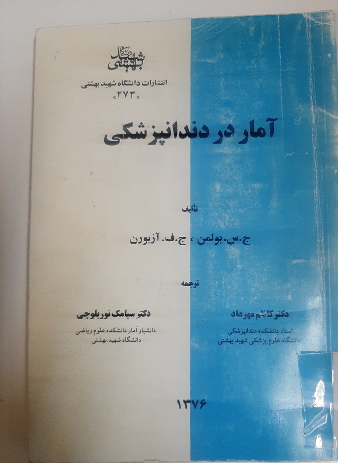 آمار در دندانپزشکی تالیف ج.س.بولمن. ترجمه کاظم مهرداد، سیامک نوربلوچی دانشگاه شهید بهشتی، 1376 |
